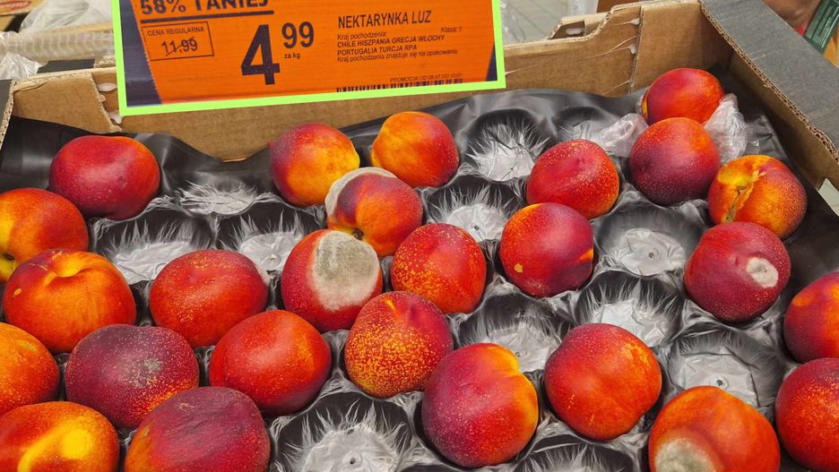 Jej wizyta, zamiast radości z udanych zakupów, przyniosła jednak niemiłe zaskoczenie. Po wejściu do sklepu białostoczanka skierowała się od razu do działu ze świeżymi produktami. Ku jej zaskoczeniu, na paletach z owocami widać było wiele nektarynek pokrytych pleśnią, a niektóre wręcz niemalże w połowie.