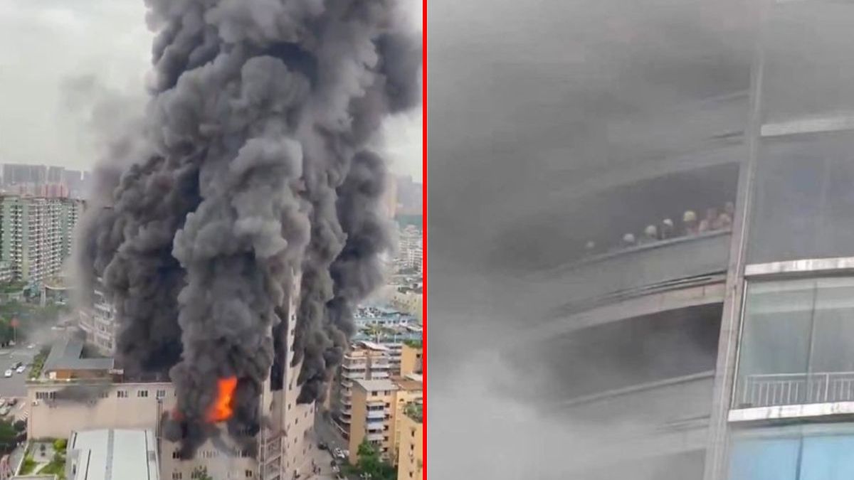Nagrania udostępniane w mediach społecznościowych pokazują gęsty czarny dym unoszący się z budynku.