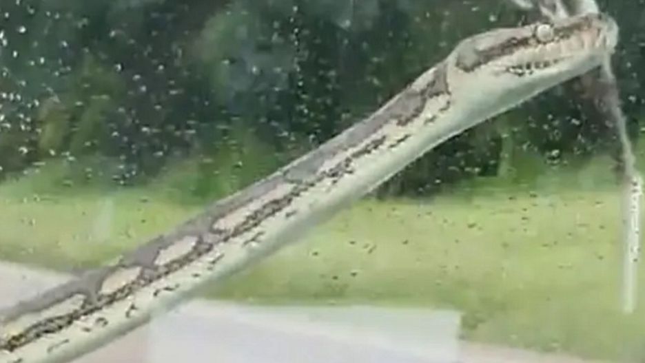 Kobietę i jej partnera, który kierował autem, zaskoczył pyton. Wąż wił się po masce i szybie pojazdu pomimo faktu, że ten się poruszał. Bezradny kierowca wpadł na dość nietypowy pomysł spłoszenia gada. Aby się go pozbyć, włączył samochodowe wycieraczki. Niestety zwierzę nie dawało jednak za wygraną.