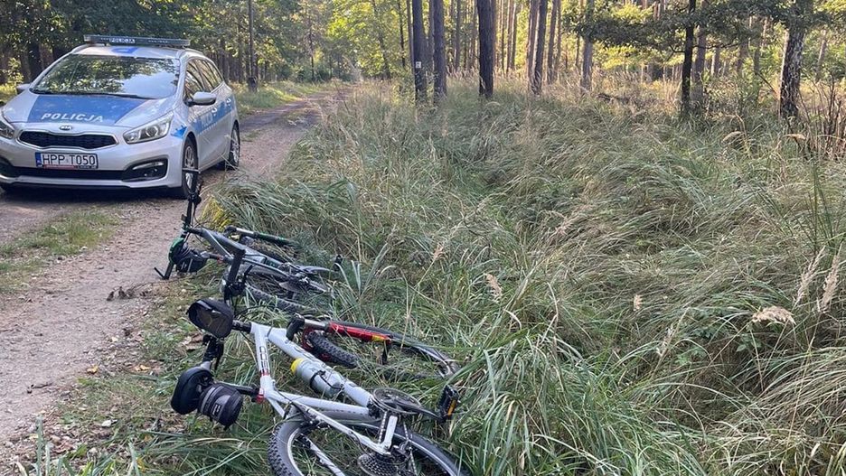 Poważny wypadek rowerzystów w lesie. 10-latek wymijał kolumnę jednośladów