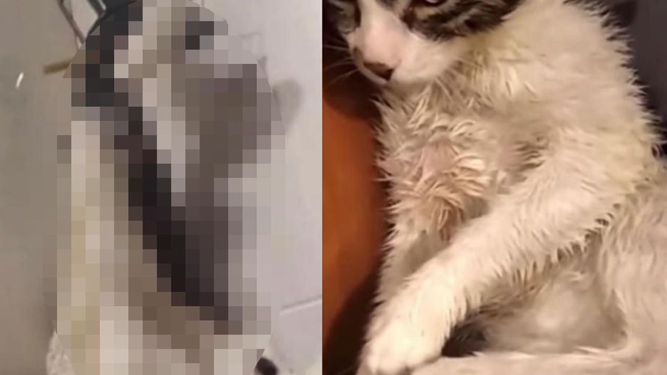 Okazało się, że maltretowany kot przeżył, ale ma duży uszczerbek na zdrowiu. Teraz może czuć się jednak bezpieczny w domu tymczasowym.