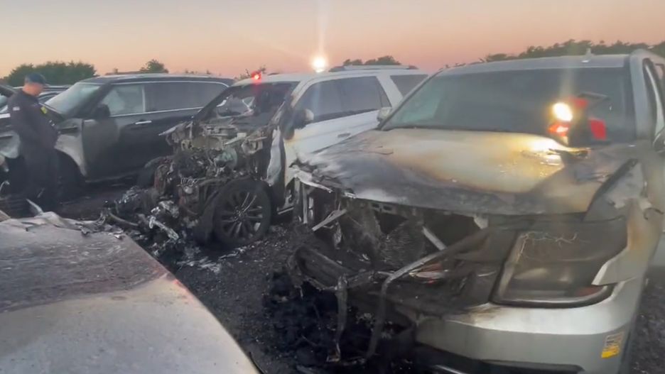 Pożar miał miejsce niecały dzień po zwróceniu samochodów do firmy wynajmującej. W mediach społecznościowych pojawiają się liczne nagrania, jak stojące obok siebie pojazdy stanęły w płomieniach i zostały poważnie uszkodzone. Łącznie ucierpiało pięć samochodów: Chevy Suburban, Ford Explorer, Ford Expedition, Jeep Gladiator i Infiniti QX80.