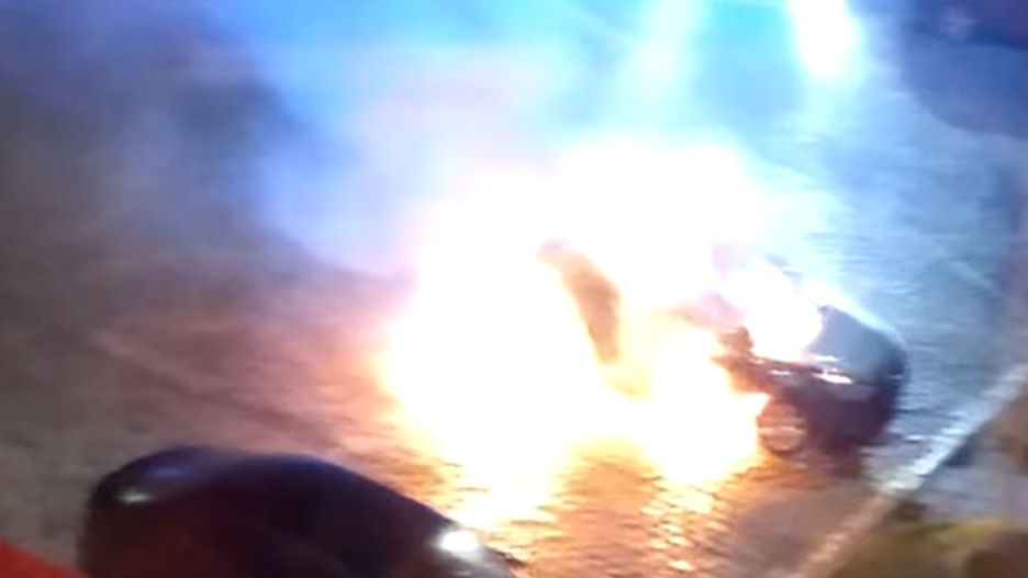 W sobotę pod komendą na ul. Karmelickiej w Warszawie spłonął radiowóz. Nieznany sprawca oblał go łatwopalną cieczą i podpalił, po czym uciekł. Policja poszukuje mężczyzny.