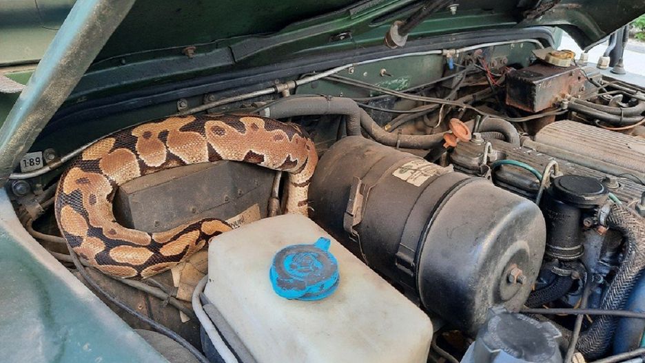 Na miejscu pojawili się strażnicy z Ekopatrolu i dowiedzieli się, że wąż się przemieścił i wślizgnął pod maskę samochodu.