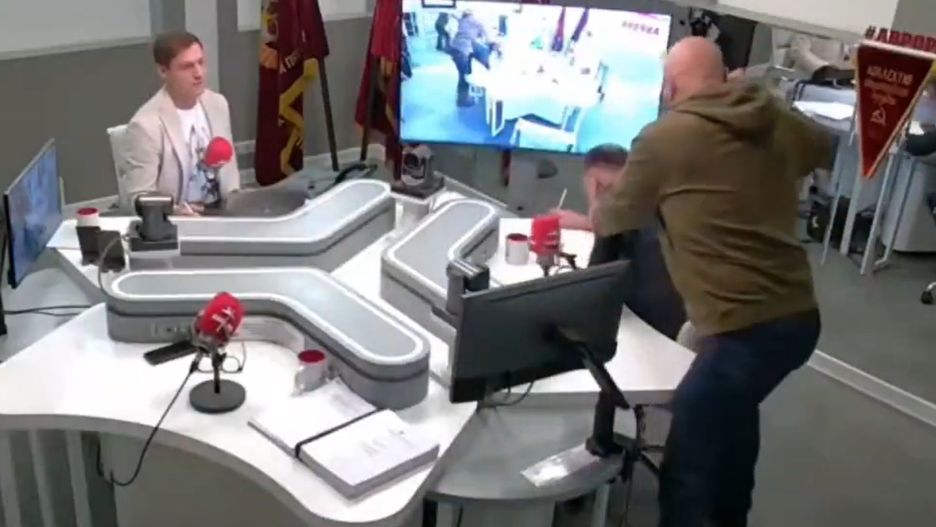 W sieci opublikowano nagranie, które pokazuje, jak dwóch propagandystów (wśród nich najprawdopodobniej Andriej Filatow z "Russia Today") pobiło się na antenie rosyjskiej stacji Aurora.