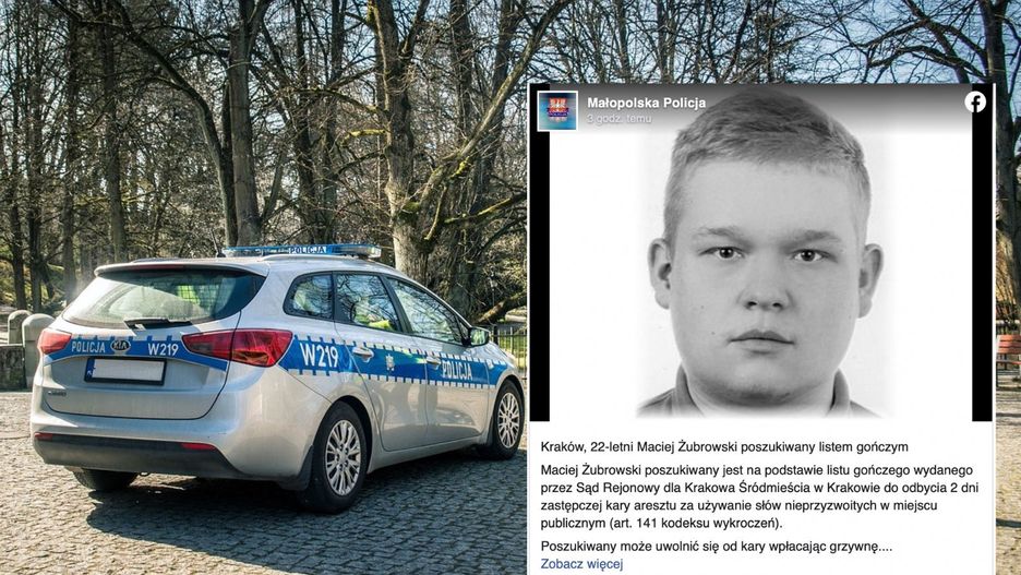 Maciej Żubrowski poszukiwany jest na podstawie listu gończego wydanego przez Sąd Rejonowy dla Krakowa Śródmieścia w Krakowie do odbycia 2 dni zastępczej kary aresztu za używanie słów nieprzyzwoitych w miejscu publicznym (art. 141 kodeksu wykroczeń) - napisano w komunikacje umieszczonym na Facebooku.