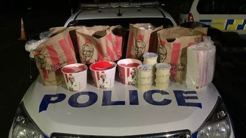 Nowozelandzka policja zatrzymała dwóch domniemanych członków gangu, którzy próbowali wjechać do Auckland autem, w którym znajdowały się znaczne ilości jedzenie z KFC, a także 100 tys. dolarów nowozelandzkich.