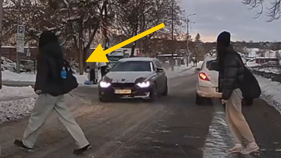 Na niespełna 20-sekundowym nagraniu widzimy trzy nastolatki z plecakami, które próbują przekroczyć w jezdnię w miejscu niedozwolonym. Ok. 20 metrów dalej było przejście dla pieszych i jedno z aut zatrzymało się, by przepuścić pieszych. To samo zrobił nagrywający, który postanowił przepuścić uczennice.