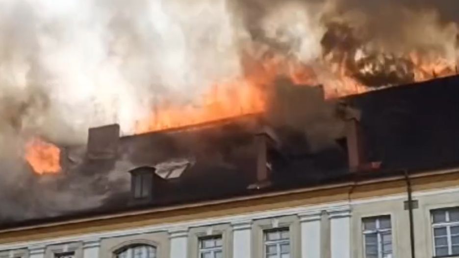 Dach budynku jest drewniany, co zdecydowanie utrudnia prowadzenie akcji gaśniczej. Jak wskazuje portal TVN 24, strażacy nie mają możliwości wejścia do wnętrza płonącej budowli. Na miejscu pracuje obecnie 12 zastępów straży pożarnej.