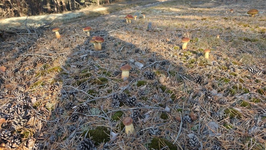 Pan Piotr zrelacjonował w sieci swoje sobotnie grzybobranie. Przy tej okazji natrafił na mnóstwo złotoborowików wysmukłych.