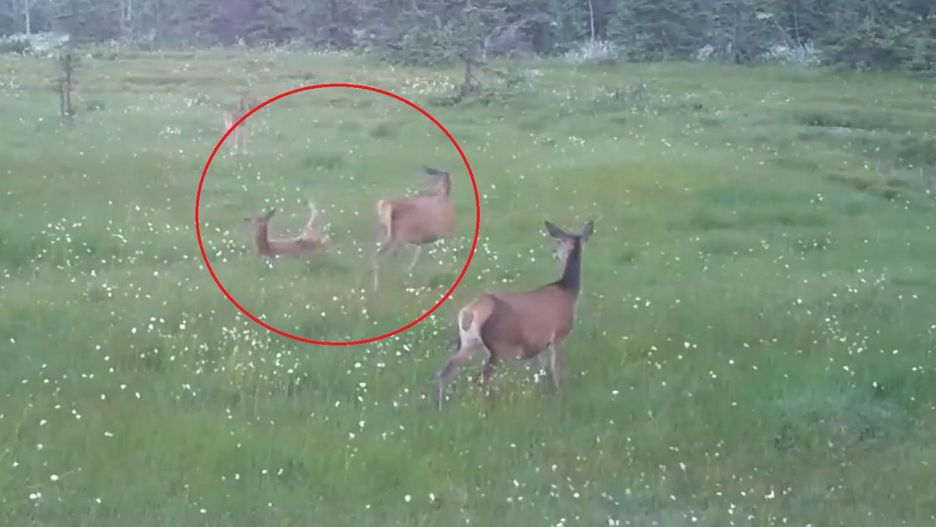 Widzimy na nim grupę saren (być może rodzinę) w otoczeniu pięknej przyrody. Dwie z nich przechadzają się spokojnym, wolnym krokiem, za to pozostałe bawią się w najlepsze. Zwierzęta biegają, skaczą i się gonią. W pewnym momencie doszło do tego, że jedna sarna wyraźnie nie zapanowała nad swoim ciałem i zaliczyła niemałego "koziołka".
