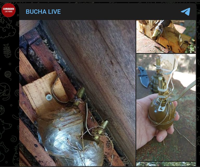 Rosjanie chcieli odebrać komuś życie, ale ukraińskie pszczoły je uratowały! Saperzy z Ochotniczej Formacji Obrony Terytorialnej nr 1 z Buczy rozbroili w lesie koło wsi Babińce pułapkę, którą "dzielni żołnierze drugiej armii świata" pozostawili po swojej haniebnej ucieczce z regionu – czytamy w komunikacie na profilu bucha_live w serwisie Telegram.