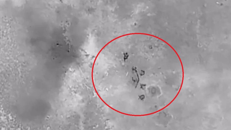 Nagranie przedstawia pięciu rosyjskich żołnierzy. Nad ich głowami leci dron, który oczywiście filmuje ich zachowanie. W pewnym momencie widzimy spadający granat, która po chwili wybucha. Rosjanie natychmiast zaczynają uciekać, a najszybciej ten, który udawał ciężko rannego.