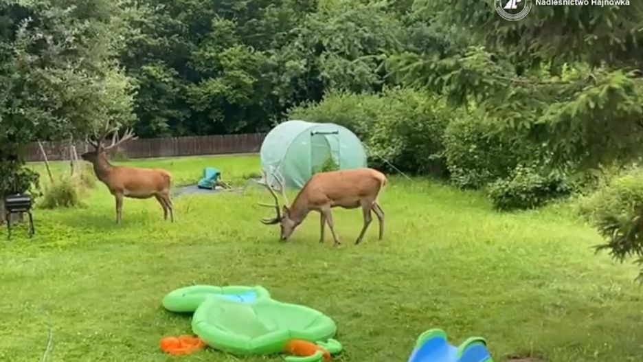 Nadleśnictwo Hajnówka (woj. podlaskie) udostępniło na Facebooku nagrania z upartymi jeleniami, które szczególnie upodobały sobie jedno z podwórek. Dwa byki gościły tam już zimą i wyjadały karmę dla ptaków. Teraz pojawiły się ponownie, a wszystko uchwyciły kamery.