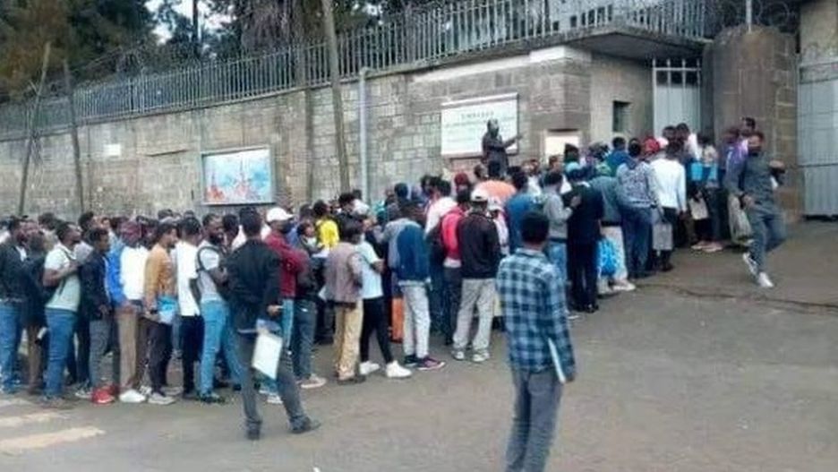 Etiopczycy czekają przed ambasadą Rosji. "Nie prowadzimy rekrutacji"
