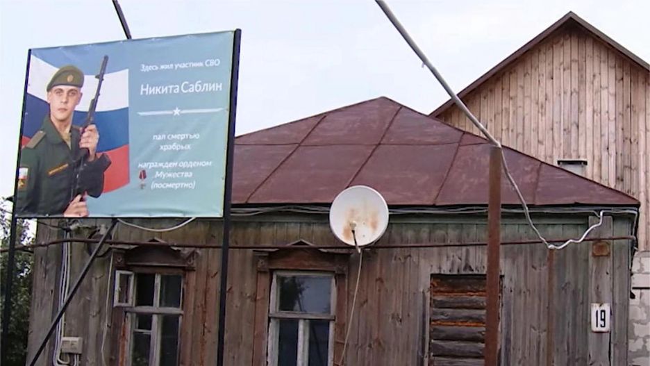 Wśród zabitych służących w "drugiej armii świata" znalazł się Nikita Sablin. Propaganda rosyjska postanowiła wykorzystać ten fakt. Postawiono baner przed domem zabitego soldata.