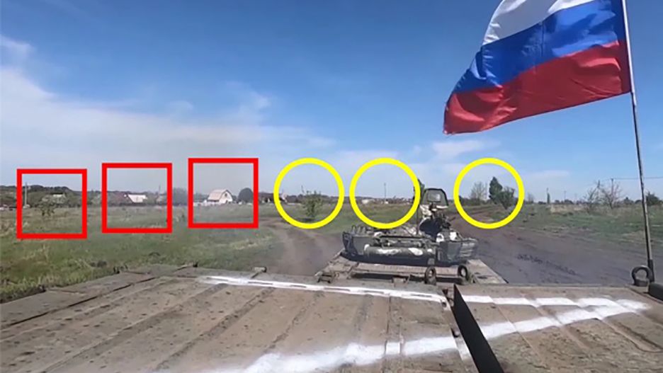 Okazuje się, że film nakręcono na rosyjskim poligonie w Biełgorodzie. W tle dostrzec można trzy budynki, które odpowiadają zabudowaniom widocznym na zdjęciach satelitarnych Google Maps. Formacja terenu również odpowiada tej uchwyconej na rzekomym klipie "z Ukrainy".
