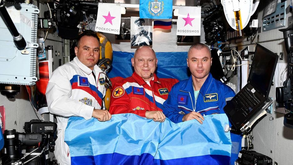 Fotografia została opublikowana przez rosyjską agencję kosmiczną Roskosmos w aplikacji Telegram. Widać na niej astronautów Siergieja Korsakowa, Olega Artemiewa i Denis Matwiejewa trzymających flagę tzw. Ługańskiej Republiki Ludowej.