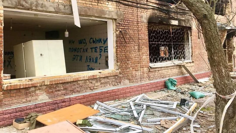Napis znaleziono wewnątrz jednego ze zbombardowanych przez Rosjan budynków. W dosłownym tłumaczeniu brzmi: "No i co, synku, pomogły ci twoje Lachy?".