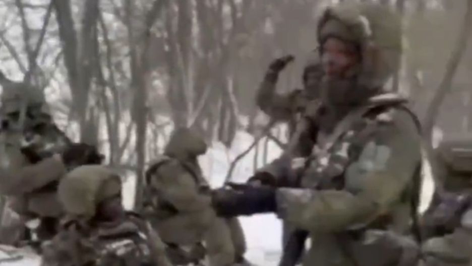 Całe zdarzenie nagrywa rosyjski żołnierz. W tle słychać jego pogardliwy komentarz.