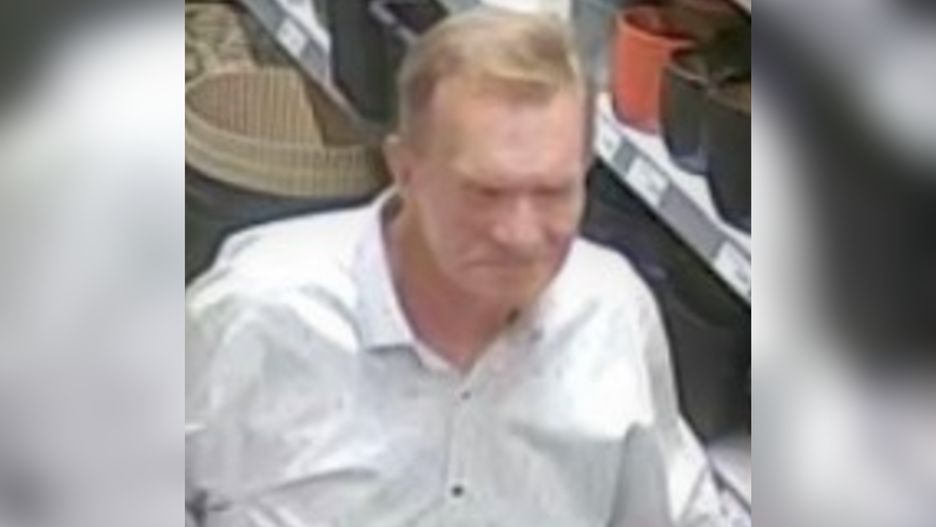 Na nagraniu z monitoringu widać, jak mężczyzna podchodzi do wózka sklepowego, wyjmuje z niego terminal w pudełku, chowa do siatki i wychodzi ze sklepu.