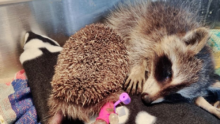Jeż i szop trafiły pod opiekę wrocławskiej EKOSTRAŻy. Malutki szop zgubił lub stracił mamę, a jeż ucierpiał w wyniku koszenia traw. Oba zwierzaki walczą o życie i się w tym nawzajem wspierają - te zdjęcia poruszą każdego twardziela!