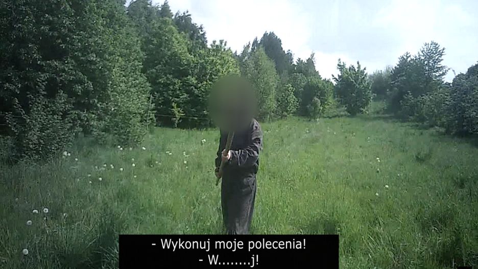 Strzały ostrzegawcze uspokoiły napastnika, ale tylko na chwilę. W pewnym momencie mężczyzna odwrócił się i ruszył w kierunku pobliskiego lasu. Biegł z widłami w ręku.