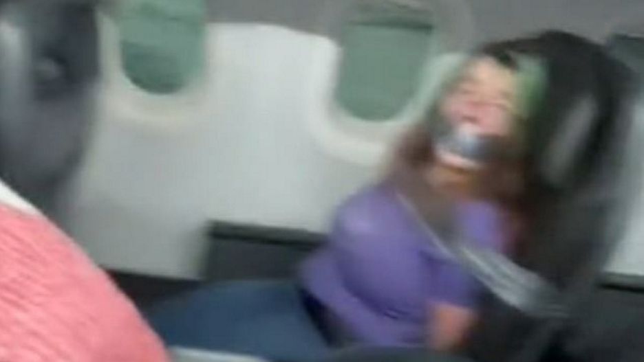 Sceny grozy w samolocie. Personel użył taśmy klejącej