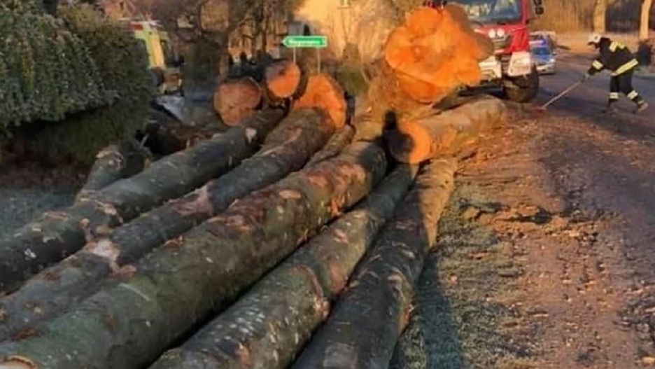 Kierowca ciężarówki przewożącej potężne pnie drzew nie dostosował prędkości do sytuacji. Pnie rozsypały się na zakręcie w pobliżu 58-letniej kobiety. W woj. pomorskim doszło do scen jak z horroru "Oszukać przeznaczenie".