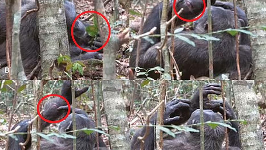 Nagranie trafiło do sieci. Widać na nim, jak szympans Suzee najpierw przygląda się ranie na stopie swojego dorastającego syna Sii, a następnie łapie owada.