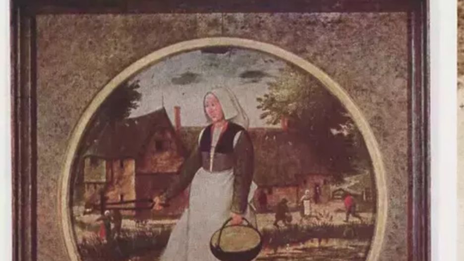 Obraz przedstawia chłopkę z tlącymi się węglami i kociołkiem z wodą, co jest alegorią niderlandzkiego przysłowia ostrzegającego przed obłudą. Dzieło ma średnicę 17 cm i zostało wykonane techniką olejną na desce.