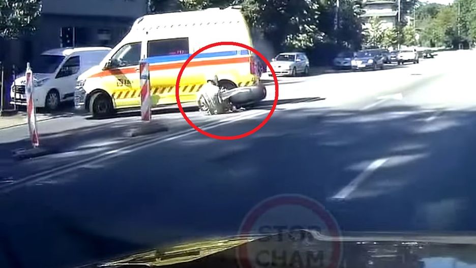 W jednym z ostatnich nagrań widzimy kolizję skutera z karetką, do której doszło w Sopocie. Kierowca skutera zdecydował się wyprzedzić karetkę, jednak w momencie manewru pojazd ratunkowy zaczął skręcać w lewo. Skutkiem tego nieprzemyślanego manewru była kolizja, w wyniku której kierowca skutera przewrócił się i upadł na jezdnię.