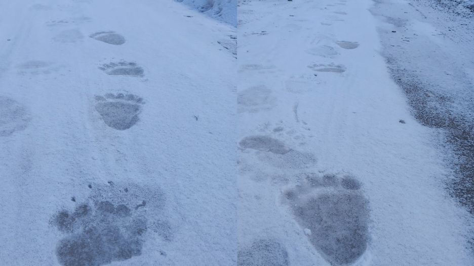 Skala śladów, ich kształt oraz sposób poruszania się wskazują na niedźwiedzia brunatnego, jednego z najbardziej charakterystycznych, a zarazem najbardziej skrytych mieszkańców Bieszczadów. To widok rzadki, ale nie zaskakujący dla osób znających realia tego regionu.