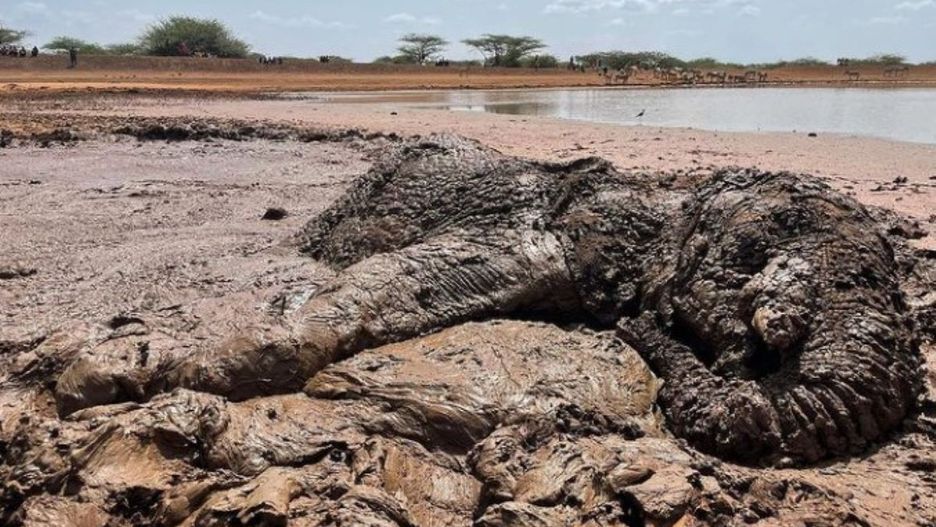 Samica słonia afrykańskiego utknęła w kałuży błota obok tamy w hrabstwie Isiolo w Kenii. Gdy zwierzę wierzgało, próbując się wydostać, jedynie coraz głębiej się zakopywało.