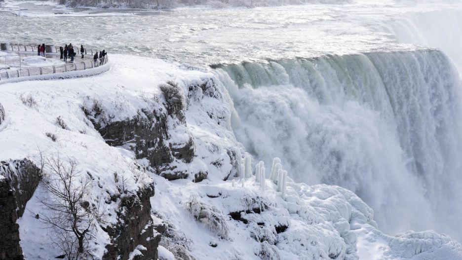 Z powodu zamarznięcia powierzchni wody, zimnej mgły i tworzenia się sopli na krawędzi Niagary wytworzyły się duże czapy lodowe, których grubość sięga miejscami 12 metrów – podała ontaryjska agencja Niagara Parks.