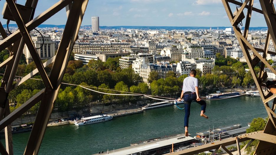 Turyści znajdujący się na bulwarach Sekwany i pod wieżą Eiffla w Paryżu mogli ujrzeć niecodzienny pokaz zręczności. 70 metrów nad ich głowami po taśmie spacerował 27-letni śmiałek. Nathan Paulin pokonał blisko 700-metrową trasę w około 30 minut.