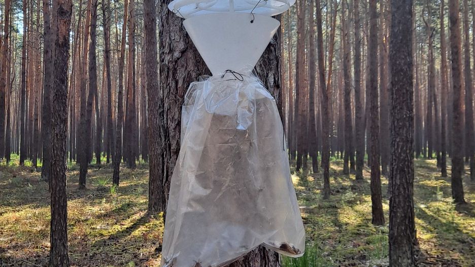 W okresie od czerwca i lipca w lasach można zauważyć dziwne konstrukcje wiszące na drzewach - biały lejek z daszkiem, a od dołu przywiązana do niego foliowa torebka. Leśnicy tłumaczą, do czego służą?