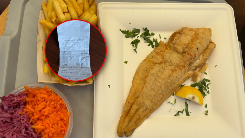 Za obiad dla czteroosobowej rodziny zapłaciła 162 zł - dwa smażone dorsze kosztowały 74 zł, frytki 24 zł. Ponadto osobno płacono za surówkę (16 zł), napoje wyniosły 30 zł, a piwo truskawkowe 18 zł. Dzieci skusiły się tylko na frytki, ale porcja nie była mała.