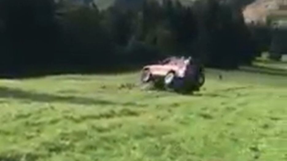 Nagle z auta wypadł jeden z pięciu pasażerów. Mężczyzna podniósł się i chciał dogonić uciekający samochód, jednak po kilku krokach się przewrócił. Po wielu kozłach samochód zatrzymał się na boku. Wideo opublikowano na Facebooku.