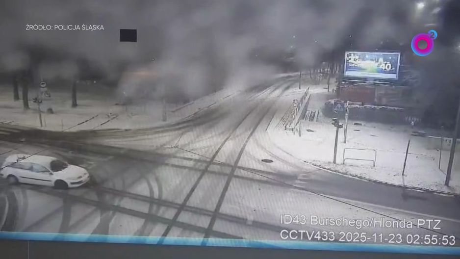 Przypadkowy świadek zauważył kolizję na skrzyżowaniu ulic Hlonda i Burschego w Tychach. Jak ustalono 22-latek był nietrzeźwy. Policja opublikowała nagranie z monitoringu.