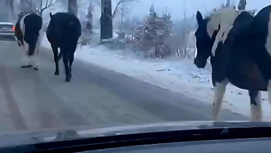 - Trzy konie spacerujące po drodze stanowiły potencjalne zagrożenie.