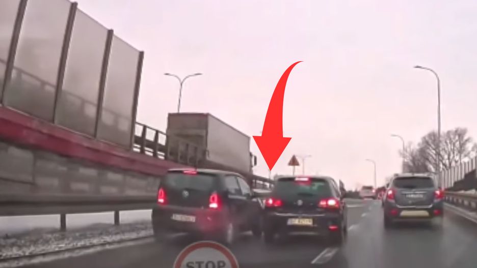 Koleś golfem blokował dwa pasy, zepchnął i uderzył w volkswagena. Następnie prawie uderzył w mój przód, potem uciekł - napisał autor nagrania.
