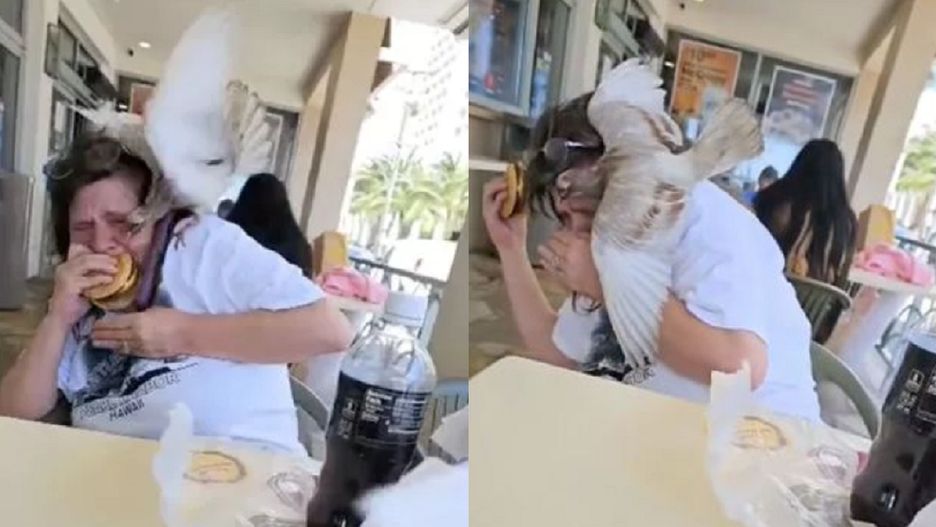 Turystka, która przyleciała do Honolulu na Hawajach, postanowił zjeść lunch w tamtejszym McDonalds. Szybko jednak pożałowała swojej decyzji, ponieważ rzucił się na nią gołąb, który próbował jej zabrać kanapkę. Ptak był bardzo agresywny i w ogóle nie bał się ludzi.