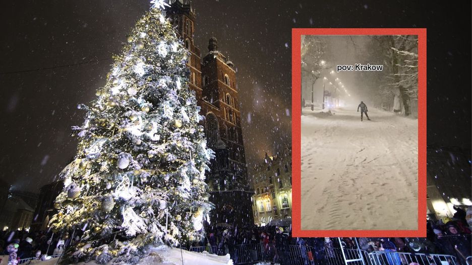 Stąd też nie dziwi pomysł pewnego mieszkańca Krakowa. Mężczyzna przemieszczał się po centrum miasta, korzystając z nart.