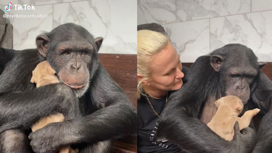Szympans i szczeniak to para nowych, ale niezwykle rozczulających przyjaciół. Wideo z ich zapoznania stało się hitem na TikToku i zdecydowanie zasługuje, aby trafić do naszego działu #DziennaDawkaDobregoNewsa.