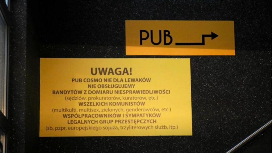 Kilka lat temu w jednym z częstochowskich klubów zrobiło się głośniej za sprawą mało przyjaznej tabliczki. Zgodnie z jej treścią właściciel lokalu nie chciał obsługiwać "lewaków", osób pracujących w wymiarze sprawiedliwości, "multikultu, multisex, zielonych, genderowców etc." i wielu innych.