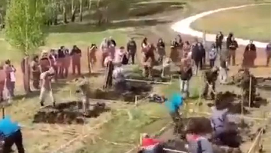 Heraszczenko przypomniał film z 2021 roku. Widać na nim, jak grabarze kopią groby na czas. Miało to miejsce przy krematorium w Nowosybirsku na Syberii. W zawodach uczestniczyły zespoły z Nowosybirska, Tomska i Republiki Ałtaju, a każdy z nich składał się z dwóch uczestników.