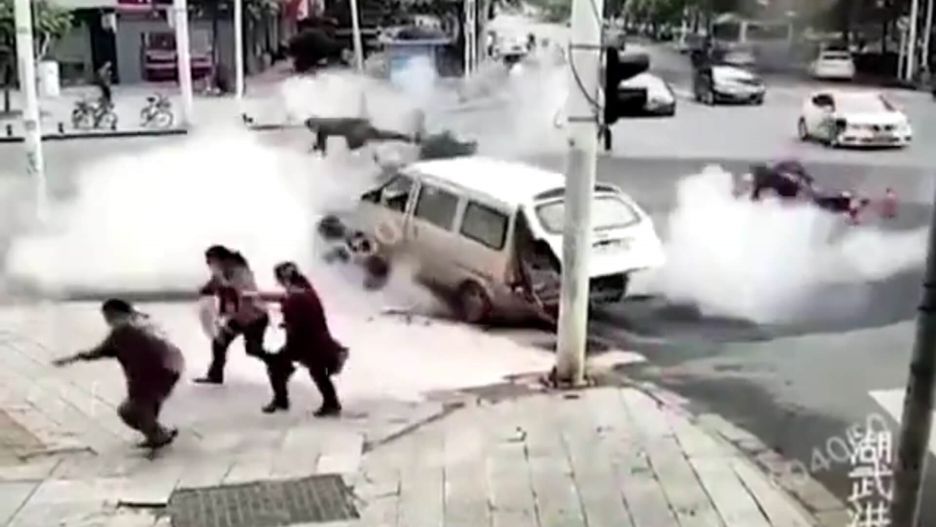 W stolicy prowincji Hubei w środkowych Chinach miała miejsce gwałtowna eksplozja. Niebezpieczne zdarzenie zostało zarejestrowane przez kamery miejskiego monitoringu. W zasięgu wybuchu byli zarówno robotnicy, jak i przypadkowi przechodnie.