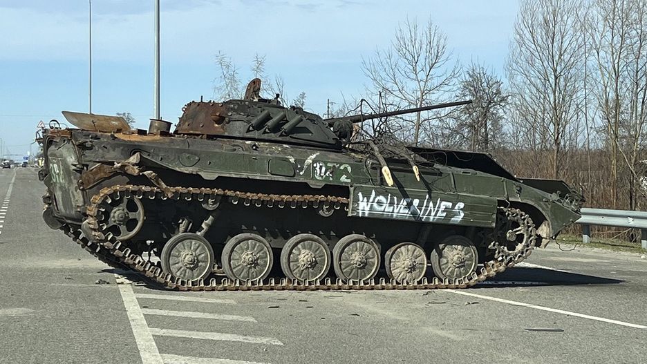 Jeden z porzuconych przez Rosjan czołgów z nietypowym oznaczeniem został sfotografowany na środku autostrady E40 na zachód od Kijowa. Był częścią konwoju zniszczonego przez ukraińską artylerię. Napisy zaobserwowano także na innych zniszczonych rosyjskich pojazdach i transporterach opancerzonych.