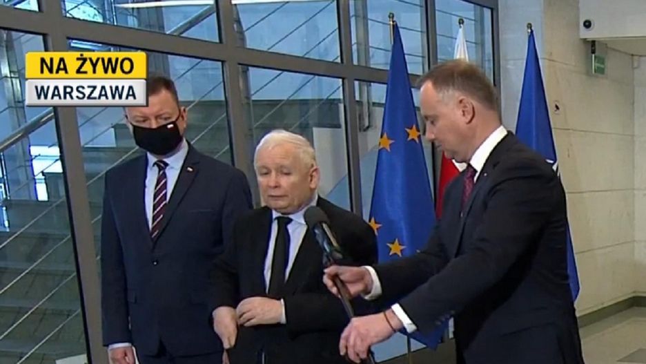 Po naradzie prezydenta Andrzeja Dudy, premiera Mateusza Morawieckiego z ministrami i szefami służb w sprawie Ukrainy, politycy zaprezentowali swoje stanowisko na temat obecnej sytuacji. Podczas konferencji, głos zabierał m.in. Andrzej Duda i Jarosław Kaczyński. Szef PiS i Prezydent RP stali obok siebie.